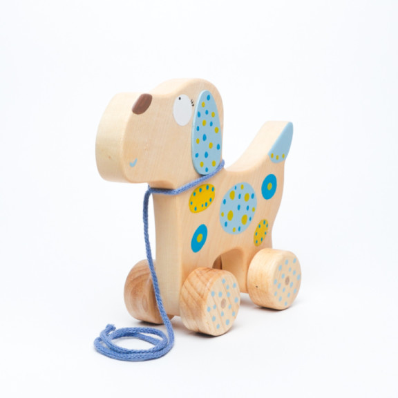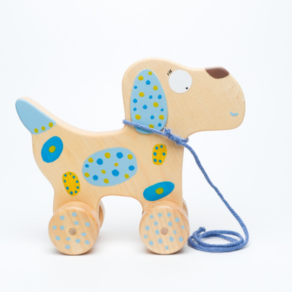Großer nachziehbarer Hund aus Ahorn himmelblau