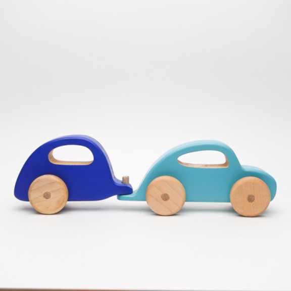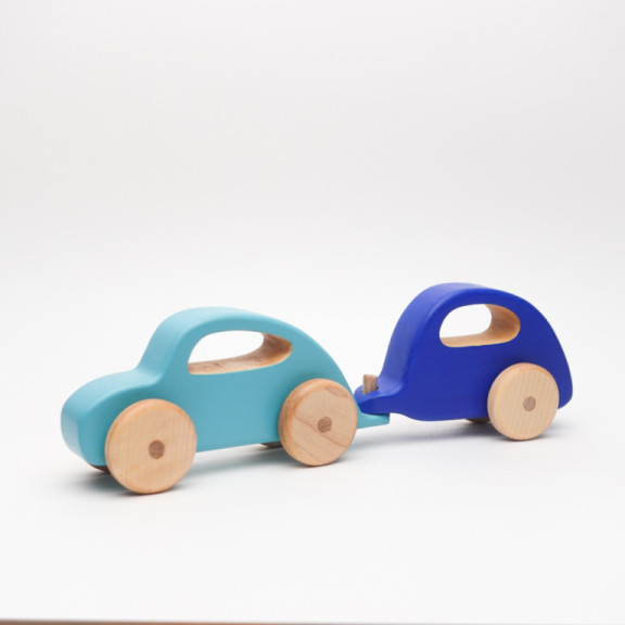 Wohnwagen aus Ahornholz mit Rädern aus Ahorn. Geeignet für Kinder ab 18 Monaten.