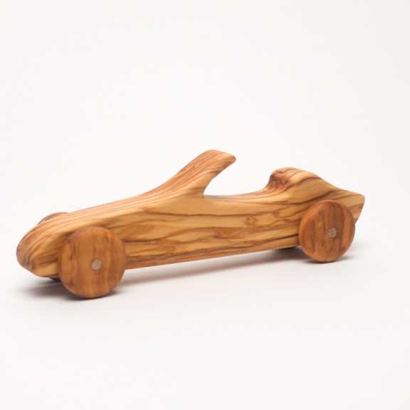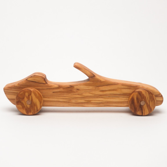 Convertible car in fine Calabrian olive wood. Suitable for children aged 6 months and up.