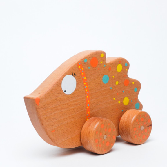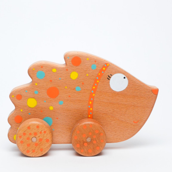 Hedgehog in beech wood. Thanks to the soft shapes the child can push it by hand. Suitable for children aged 18 months and up.