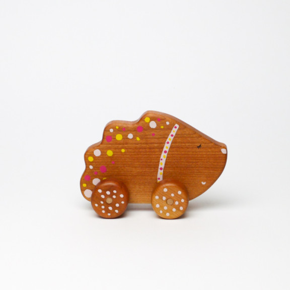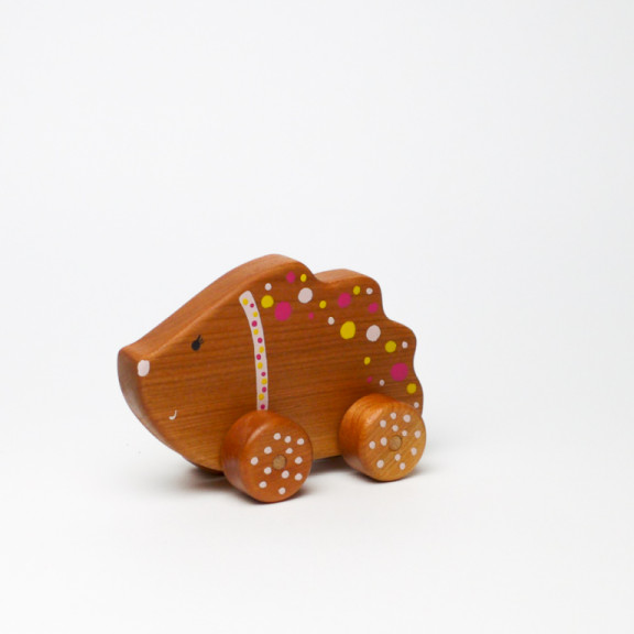 Cherry wood hedgehog. Thanks to the ergonomic shape, the child can push it. Suitable for children aged 6 months and up.