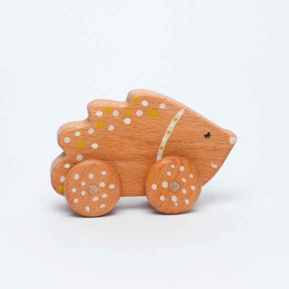 Hedgehog in beech wood. Thanks to the ergonomic shape, the child can push it. Suitable for children aged 6 months and up.