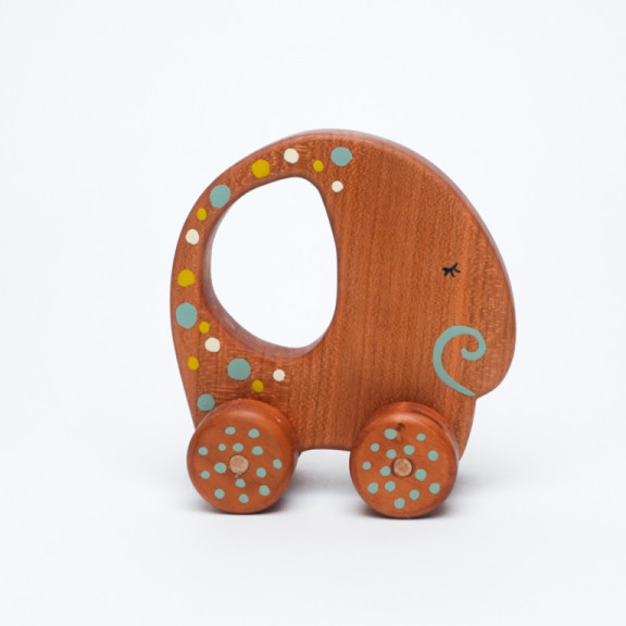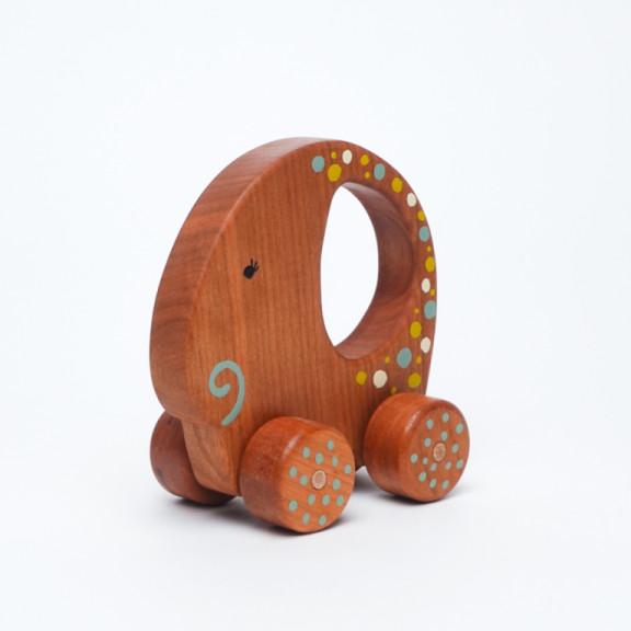 Elephant in cherry wood. Push and go with the easy-grip Elephant. Suitable for children aged 6 months and up.