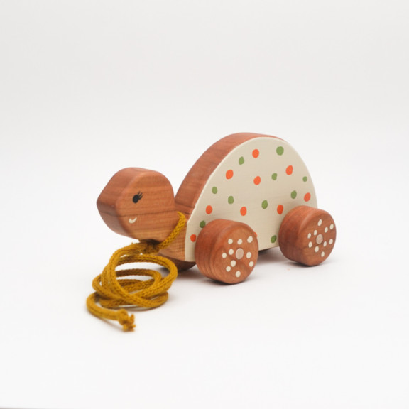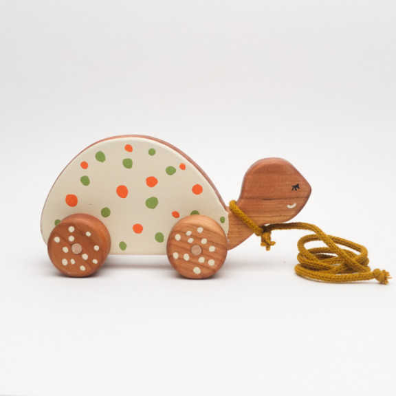 Medium towable turtle made of cherry wood cream