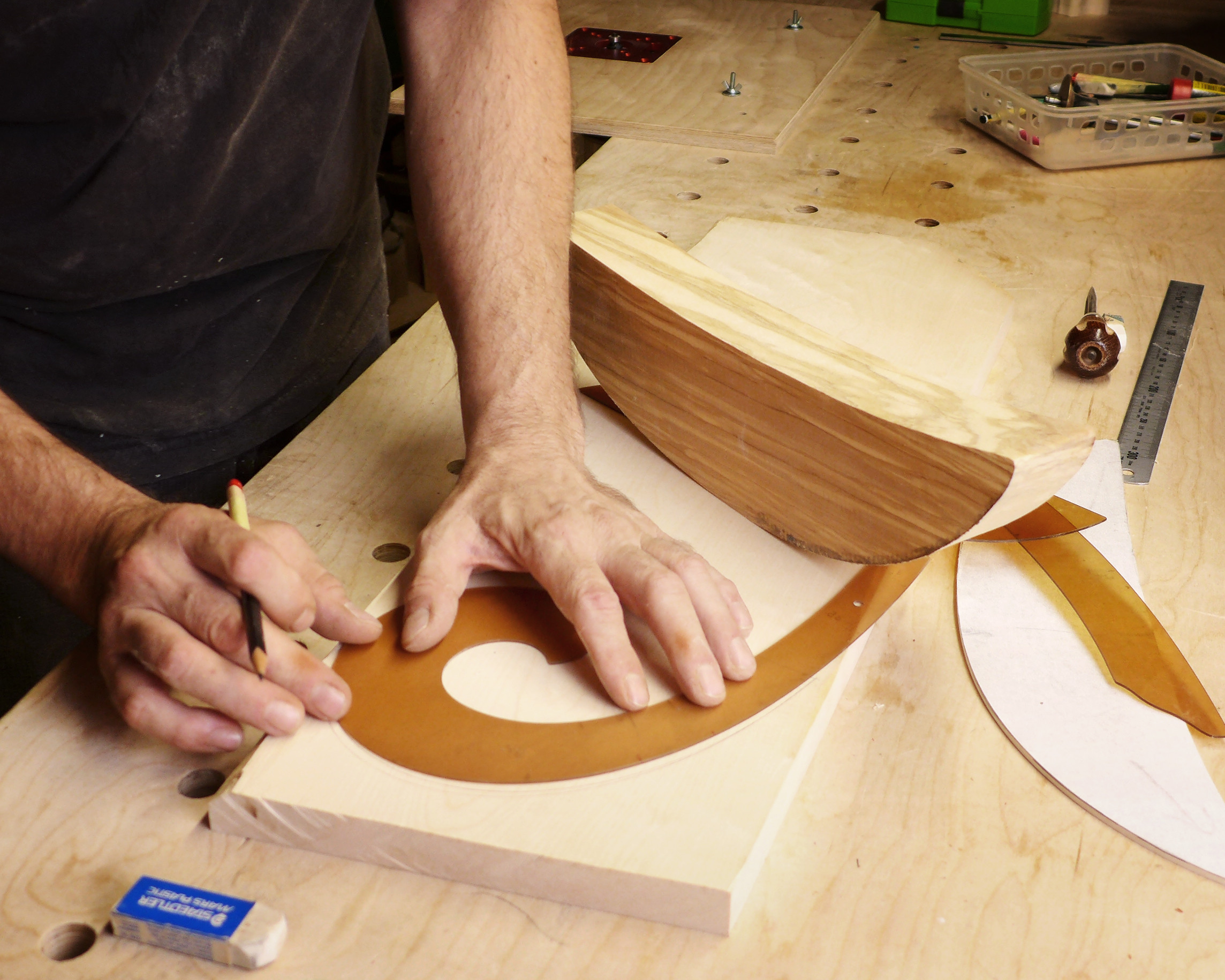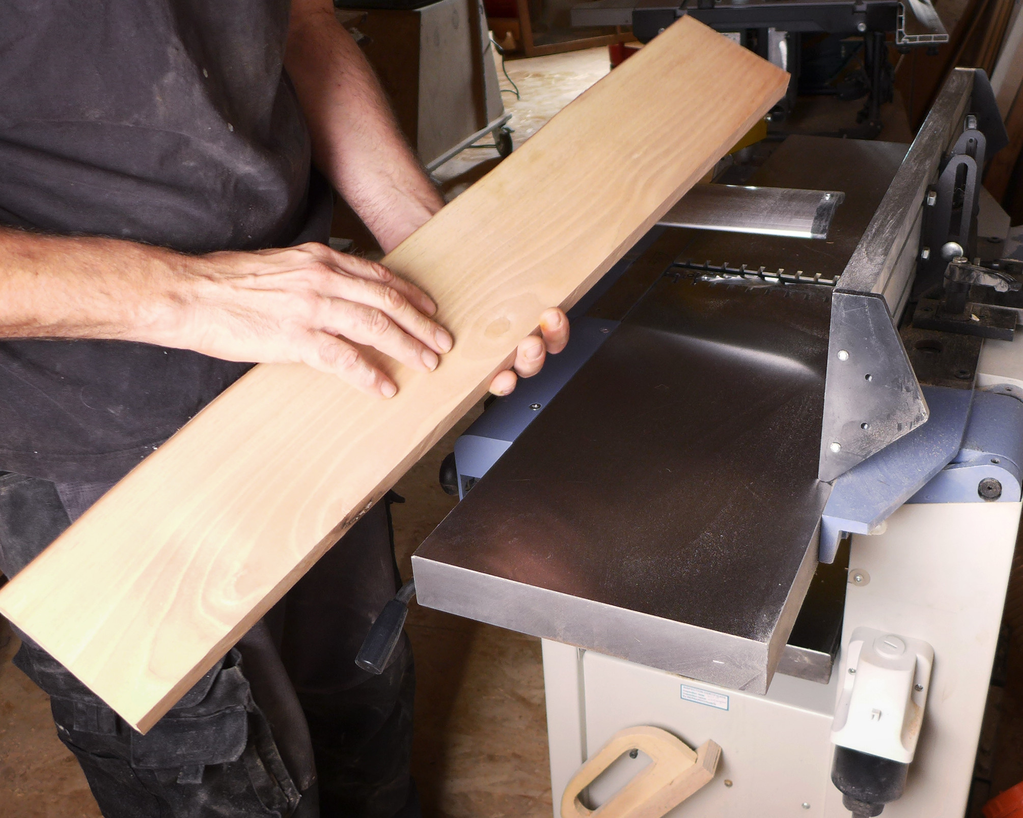 European maple grows up to 30 meters tall and has a diameter of 1.5 meters. After Bernhard planes the wood, you can see the mostly straight or wavy grain. Its white and glossy wood is very suitable for decoration. Lucia's chosen colors almost shine against the light background.