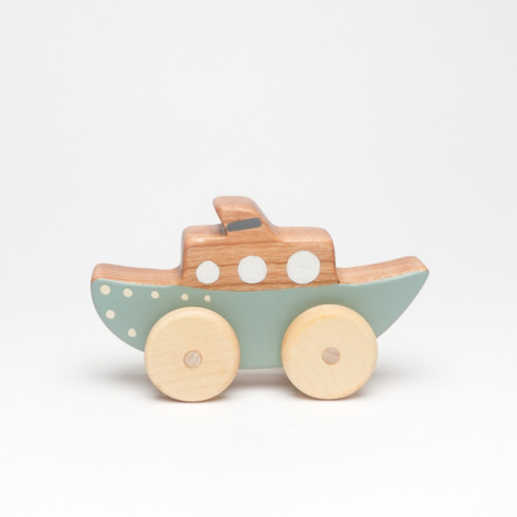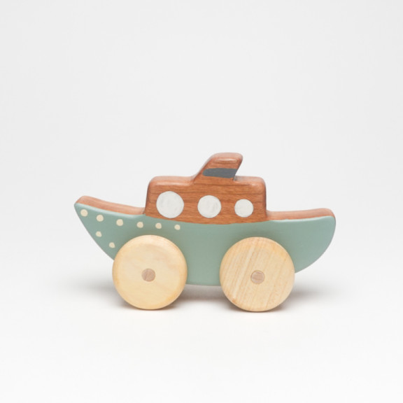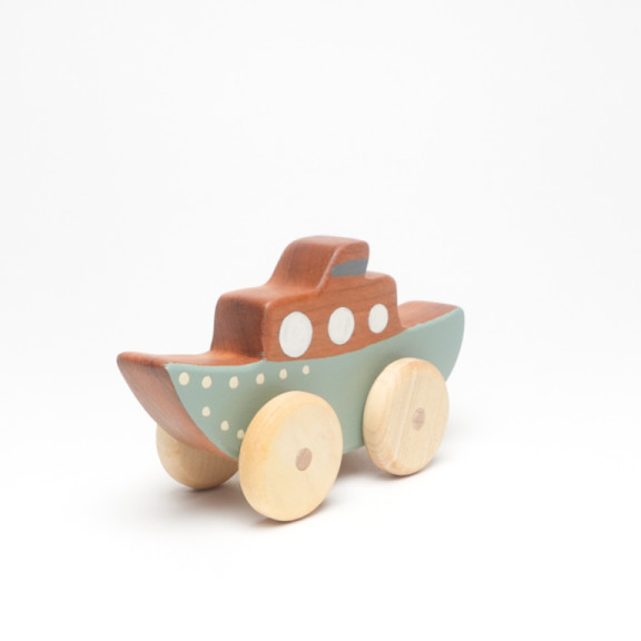 Pronti per esplorare nuovi mondi con la piccola Barca a Vapore! Realizzata a mano in legno di ciliegio, è decorata con colori acrilici atossici e olio di lino crudo, che ne esaltano le venature naturali e garantiscono una finitura sicura e piacevole al tatto.