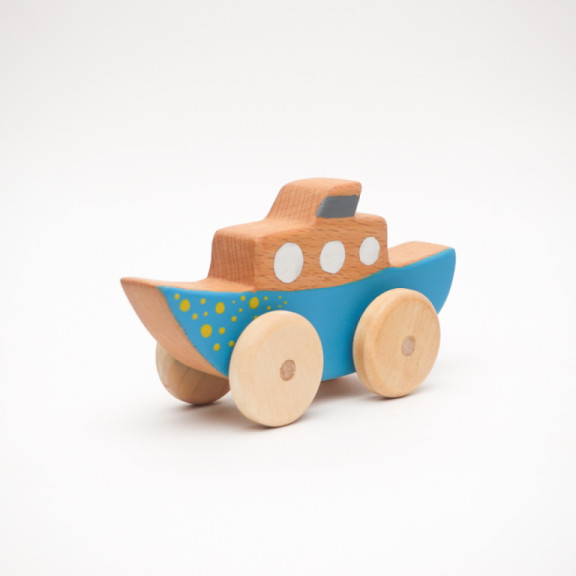 Pronti per esplorare nuovi mondi con la piccola Barca a Vapore! Realizzata a mano in legno di faggio, è decorata con colori acrilici atossici e olio di lino crudo, che ne esaltano le venature naturali e garantiscono una finitura sicura e piacevole al tatto.