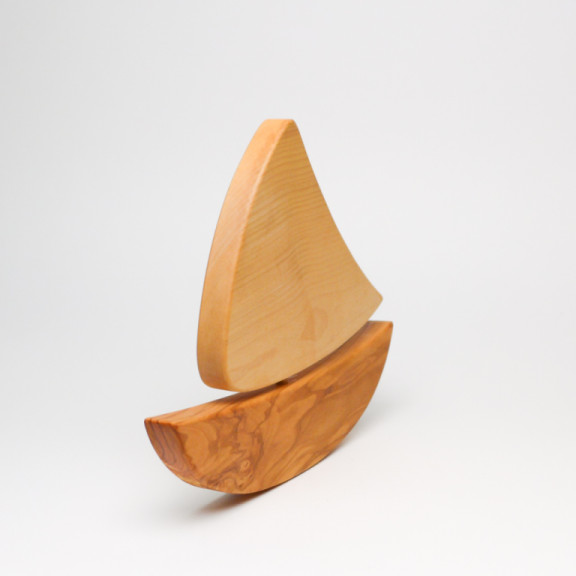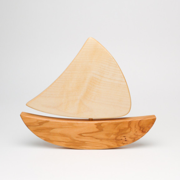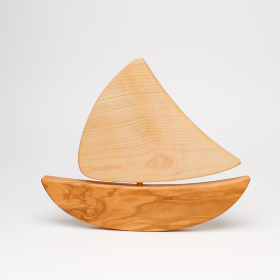 #0001Elegante e minimale, questa barca a vela unisce scafo in pregiato legno di ulivo calabrese e vela in legno di acero. Il design Bernhard esprime uno stile essenziale e pulito, rendendola un pezzo unico ideale anche per collezionisti.