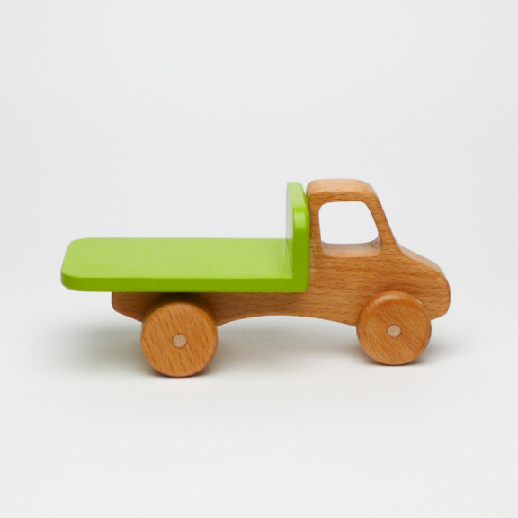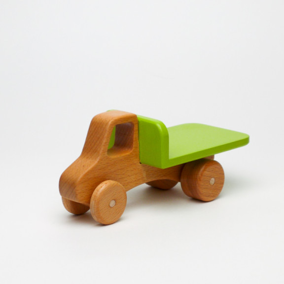 Realizzato in legno di faggio, solido e naturale, questo camioncino dal design Bernhard è decorato con colori acrilici atossici e olio di lino crudo, che ne esaltano la texture e lo rendono piacevole al tatto.