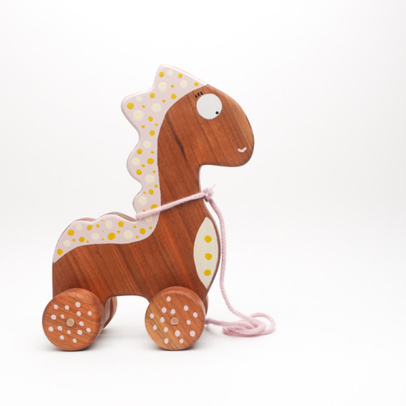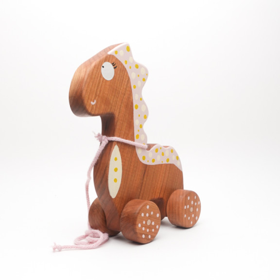 Un tenero dinosauro dal cuore di legno di ciliegio, pronto a diventare il primo compagno di avventure dei più piccoli.