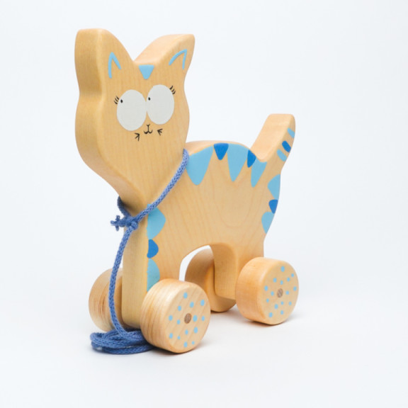 Gatto in legno d’acero naturale, dal design essenziale e curato. La forma compatta e la simpatica espressione lo rendono un compagno di gioco ideale per i primi passi.