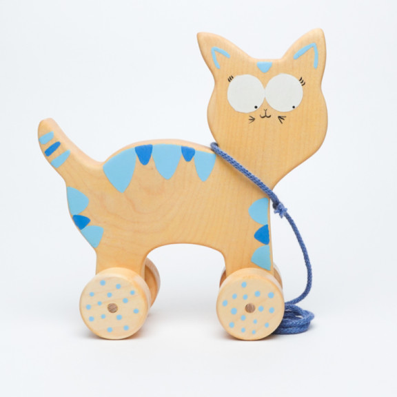 Gatto grande trainabile in legno di acero azzurro
