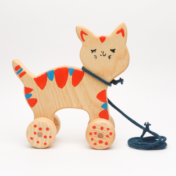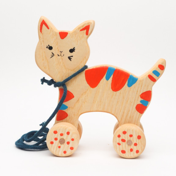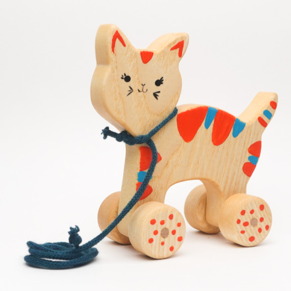 Realizzato in legno di frassino levigato e rifinito con colori atossici e olio di lino crudo, questo gattino trainabile stimola la curiosità e la motricità del bambino.