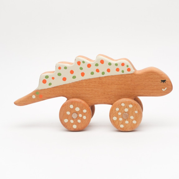 Realizzato a mano in legno di faggio e decorato con acrilici atossici dai colori vivaci e piccoli pois colorati, rifinito con olio di lino crudo per una superficie liscia e naturale.