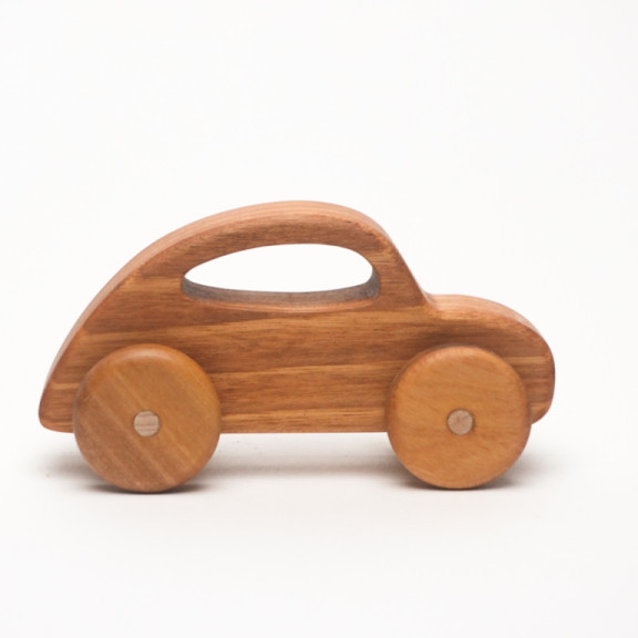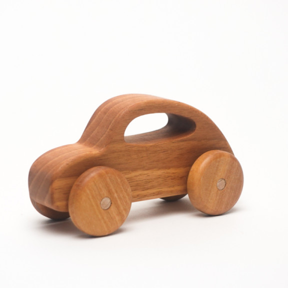 Realizzata in pregiato legno di noce nazionale, questa macchinina compatta è un pezzo ricco di fascino naturale. Il design di Bernhard richiama le linee senza tempo del vecchio Maggiolone, con una sagoma morbida e armoniosa pensata per le mani più piccole.