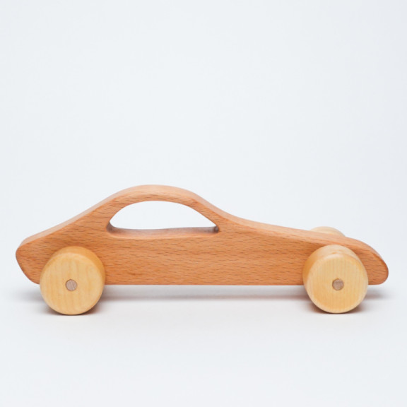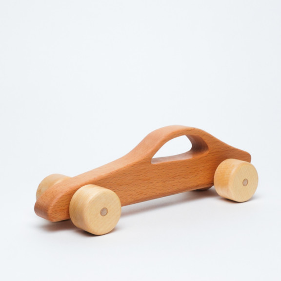 Questa macchina sportiva è realizzata in legno di faggio, un materiale solido e piacevole al tatto, con ruote in legno di acero che la rendono resistente e scorrevole durante il gioco. Il design Bernhard valorizza linee morbide e proporzioni armoniose, evocando movimento e velocità con uno stile essenziale ma deciso.