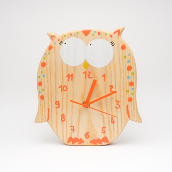 Orologio gufo in legno di frassino, arancio