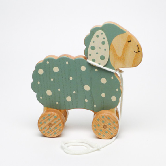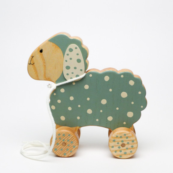 Una tenera Pecorella in legno di frassino, pronta ad accompagnare il tuo bambino nelle sue prime avventure.