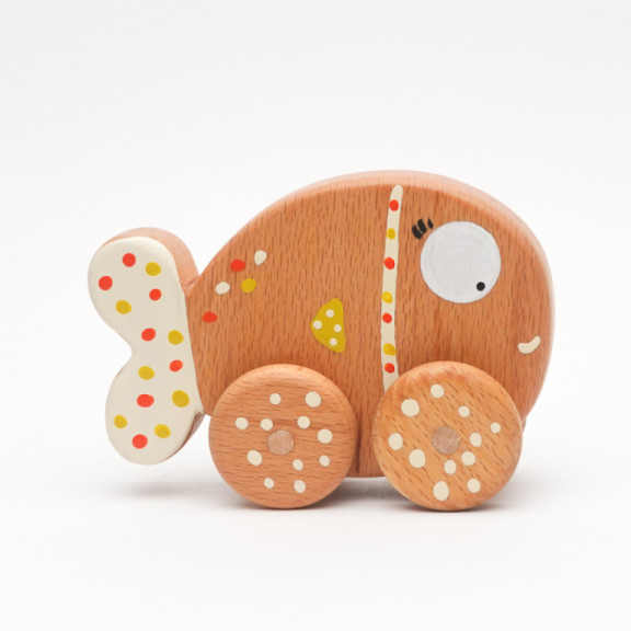 Realizzato in legno di faggio, viene dipinto a mano con acrilici atossici e rifinito con olio di lino crudo, secondo il design originale di Lucia.