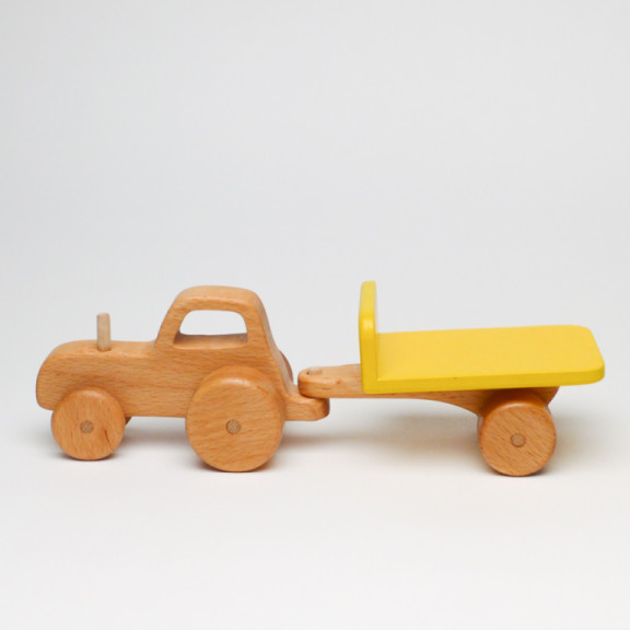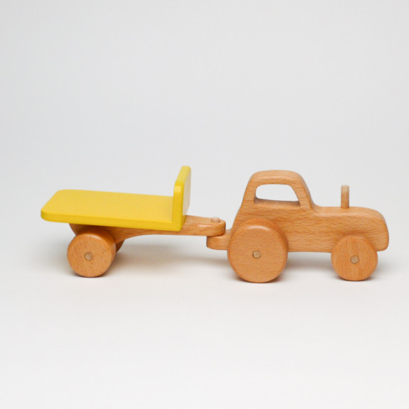 Realizzato interamente in legno di faggio, è solido, naturale e piacevole da toccare. Il rimorchio rimovibile può trasportare piccoli oggetti o altri personaggi, stimolando la fantasia e il gioco libero.