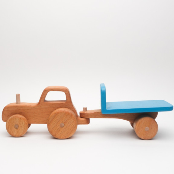 🌳 Materiale: Legno di faggio (trattore e rimorchio)